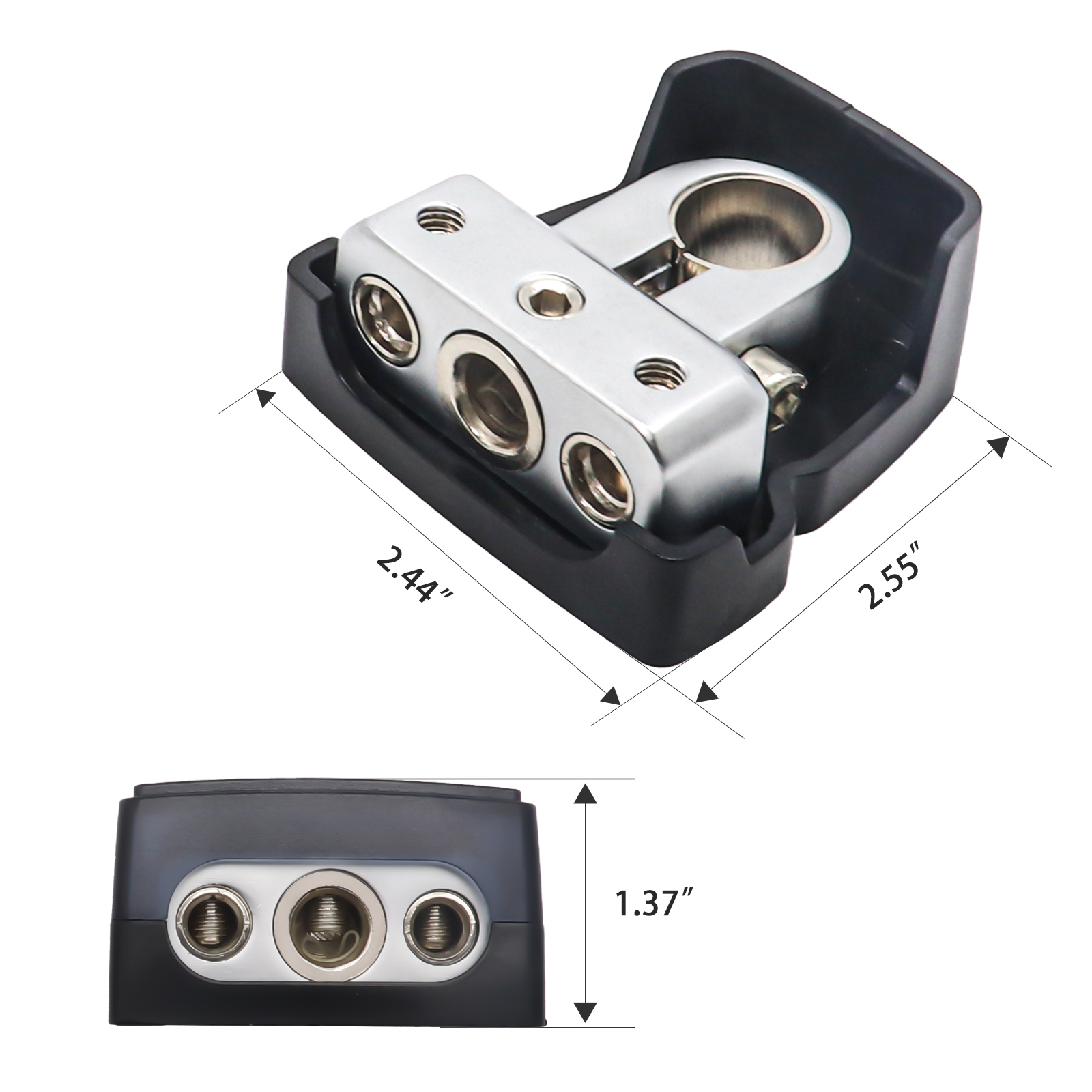Zaciski mają połączenia o wielu grubościach, co pozwala na szeroki wachlarz zastosowań. Dołączone kołnierze adaptera umożliwiają ich stosowanie do połączeń biegunów ujemnych lub dodatnich akumulatora.