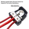 Zaciski mają połączenia o wielu grubościach, co pozwala na szeroki wachlarz zastosowań. Dołączone kołnierze adaptera umożliwiają ich stosowanie do połączeń biegunów ujemnych lub dodatnich akumulatora.