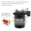 Inteligentne izolatory akumulatorów Recoil to sterowane mikroprocesorem przekaźniki wysokoprądowe stosowane w systemach z dwoma akumulatorami. Są one przeznaczone do stosowania jako system priorytetowy solenoidów w celu ochrony głównego akumulatora przed nadmiernym rozładowaniem, jednocześnie umożliwiając akumulatorowi pomocniczemu zasilanie nieistotnych obciążeń.