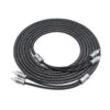 Kable sygnałowe RCA zapewniające krystalicznie czysty dźwięk stereo dla Twojego wzmacniacza, wykorzystujące konstrukcję z wielożyłowego przewodu miedzianego beztlenowego 99,99%, oraz podwójnej skrętki i ekranowanie z folii aluminiowej w celu wyeliminowania zakłóceń, dla maksymalnego transferu sygnału. Najwyższej jakości zakończenia mosiężne obrabiane maszynowo z powłoką odporną na korozję dostosowaną do warunków atmosferycznych, zapewniają bezpieczne połączenie dla doskonałego transferu sygnału. Owinięty super trwałym czarnym nylonowym oplotem w celu ochrony kabla przed ostrymi krawędziami. Elastyczna, satynowa osłona izolacyjna z PVC utrzymuje elastyczność przewodu, zapobiegając jednocześnie korozji i uszkodzeniom w nieprzyjaznym środowisku pojazdu. Kompaktowa konstrukcja złącza do instalacji w ciasnych przestrzeniach.
