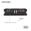 wysokiej klasy podzespoły wewnętrzne oraz 4-drożny układ zabezpieczający, wzmacniacz będzie bezpiecznie pracował na najwyższym poziomie przez wiele godzin.